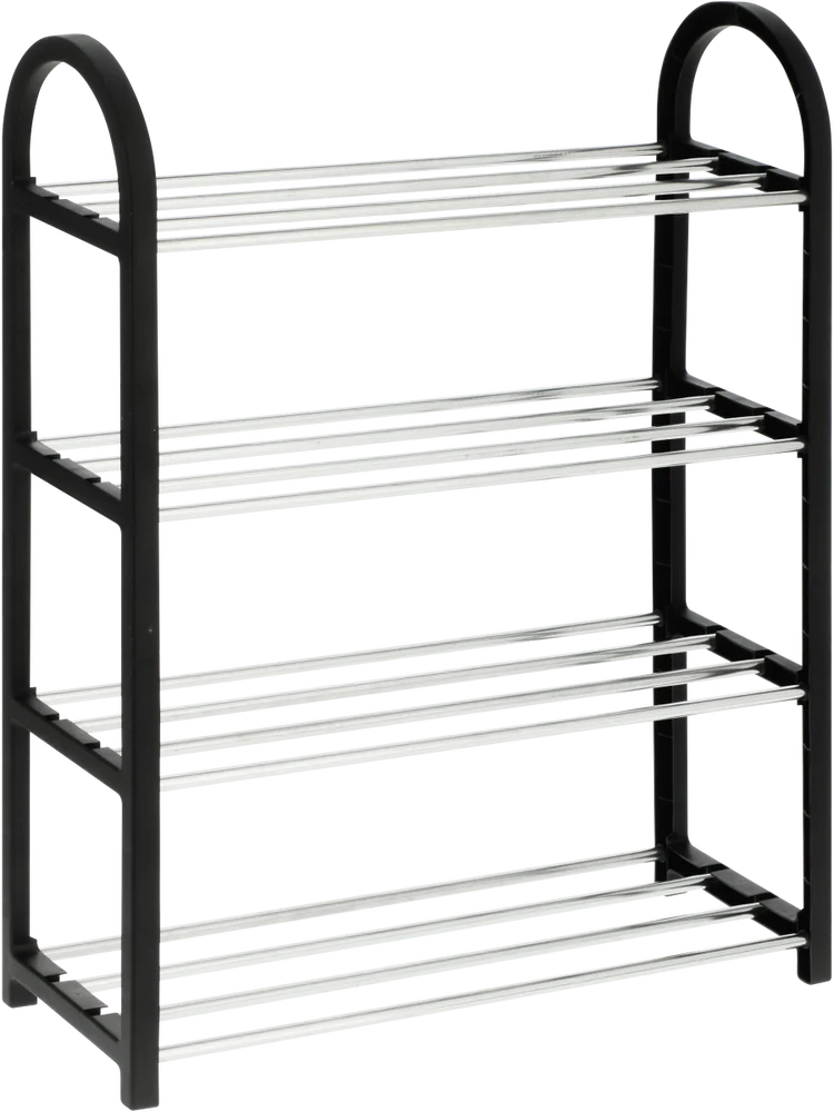 Effortlessly organize your footwear with this versatile 4-tier shoe rack. Its sturdy black frame and durable metal rods provide ample storage, keeping your space tidy. The open design allows for easy access and proper ventilation, simplifying shoe selection.