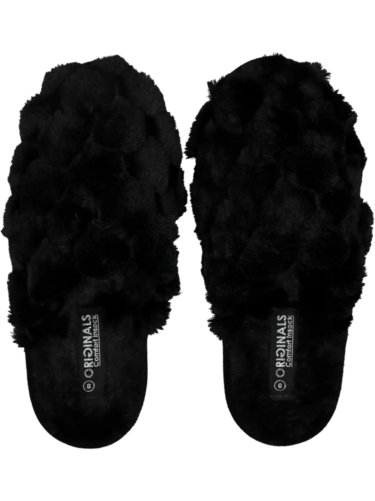 Black Bubble Faux Fur Slippers