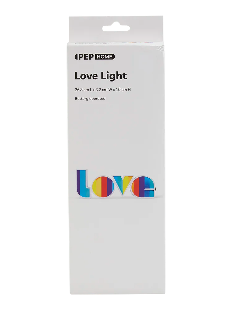 Brighten your space with this captivating LED sign, spelling out "LOVE" in vibrant rainbow colors. Its sleek white frame and dynamic lighting create a welcoming ambiance, perfect for any room or celebration.