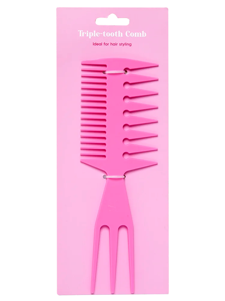 Achieve perfect hair styling with this vibrant pink multi-function comb. Its durable construction features a unique triple-tooth section for versatile styling, complemented by traditional fine and wider teeth. The integrated three-pronged pick assists with sectioning and lifting, making it a dynamic tool for all your hair needs.